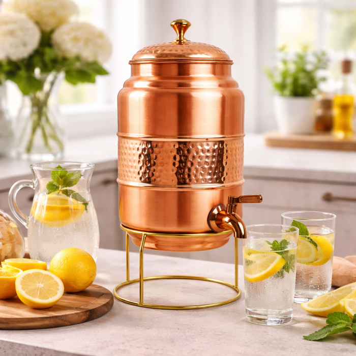 🔸 Recipiente din cupru pentru apă – Păstrează apa proaspătă și purificată datorită proprietăților antibacteriene ale cuprului.