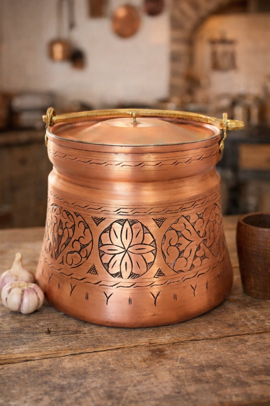 Ръчно гравирана медна тенджера 5 литра – Калаено покритие | ARANA