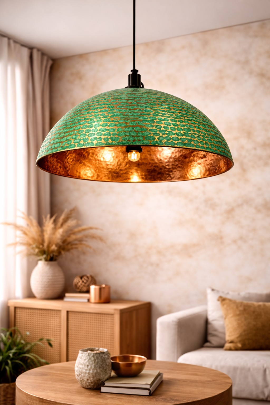 Lustră din cupru Smarald – Eleganță atemporală, lucrată manual