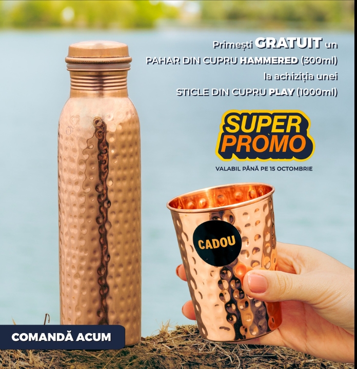 Am apreciat ca in spate este o familie tanara careia ii pasa de Pamant; am apreciat telefonul de confirmare si multumire si biletelul scris de mana din pachet. Stiu de beneficiile cuprului demult si sticla mea rosie ma bucura acum zi de zi!