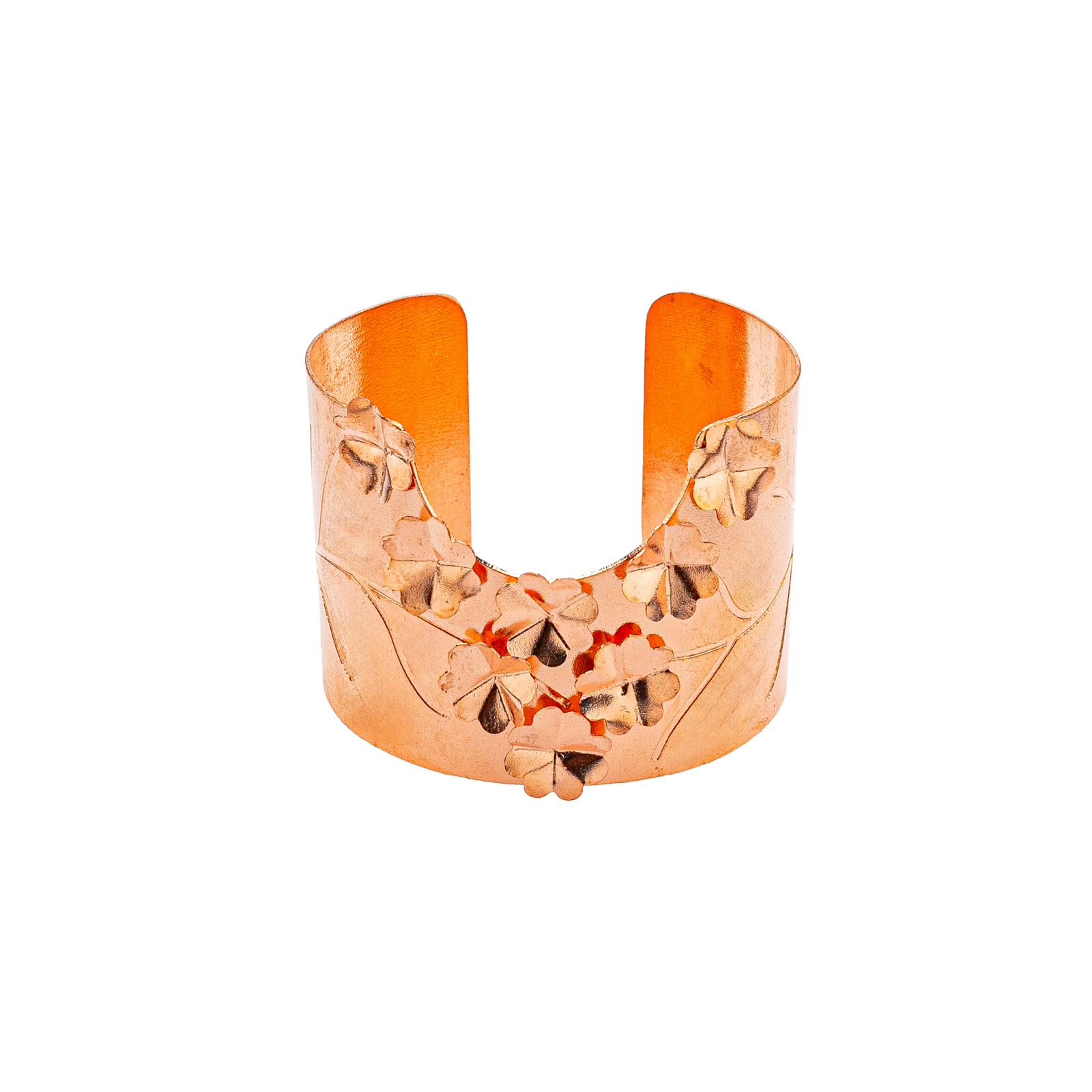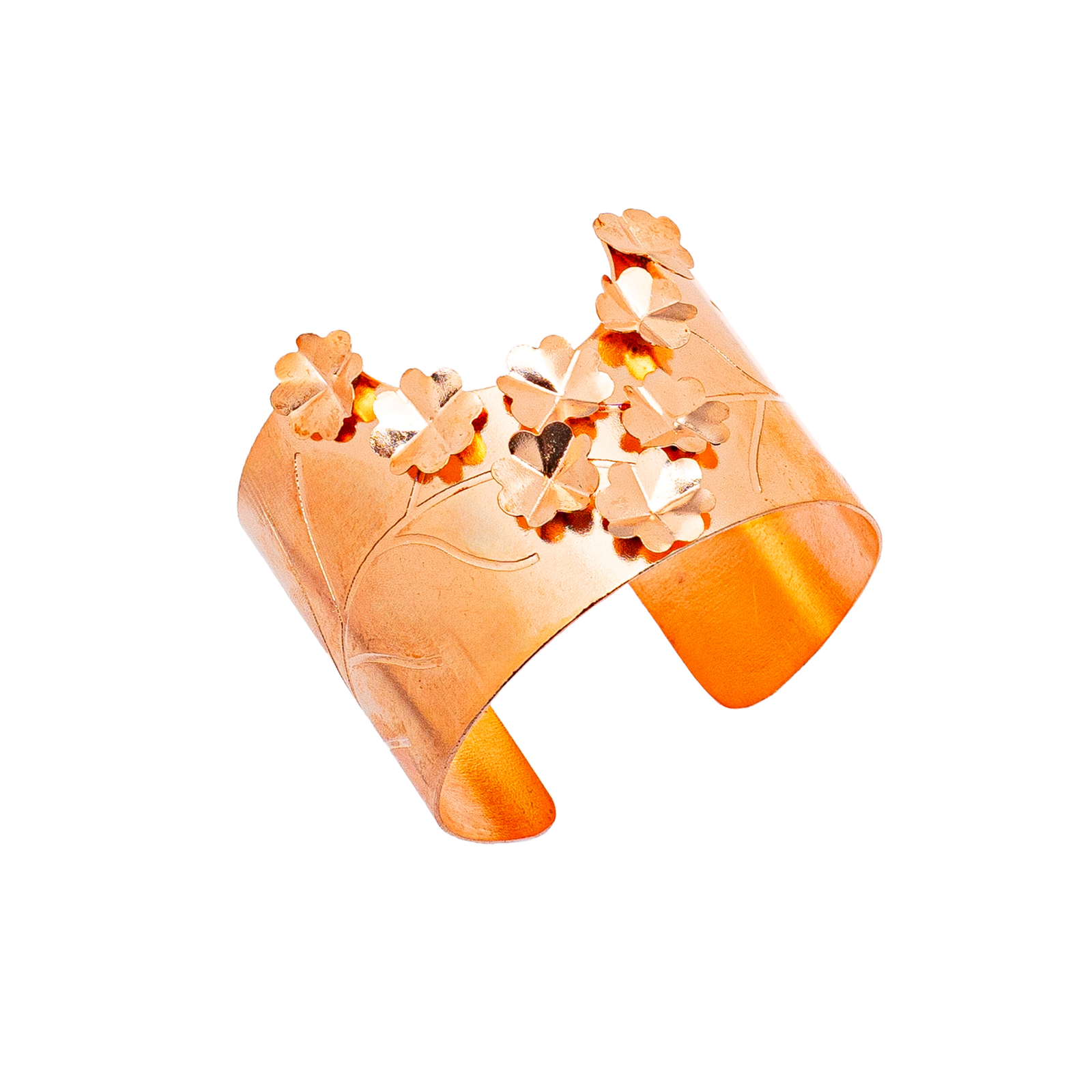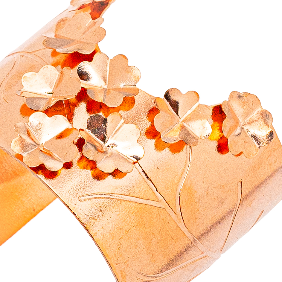 Brățara din cupru Lucky este o piesă lucrată manual, decorată cu mici frunze de trifoi modelate individual, simbol al norocului, speranței și echilibrului.