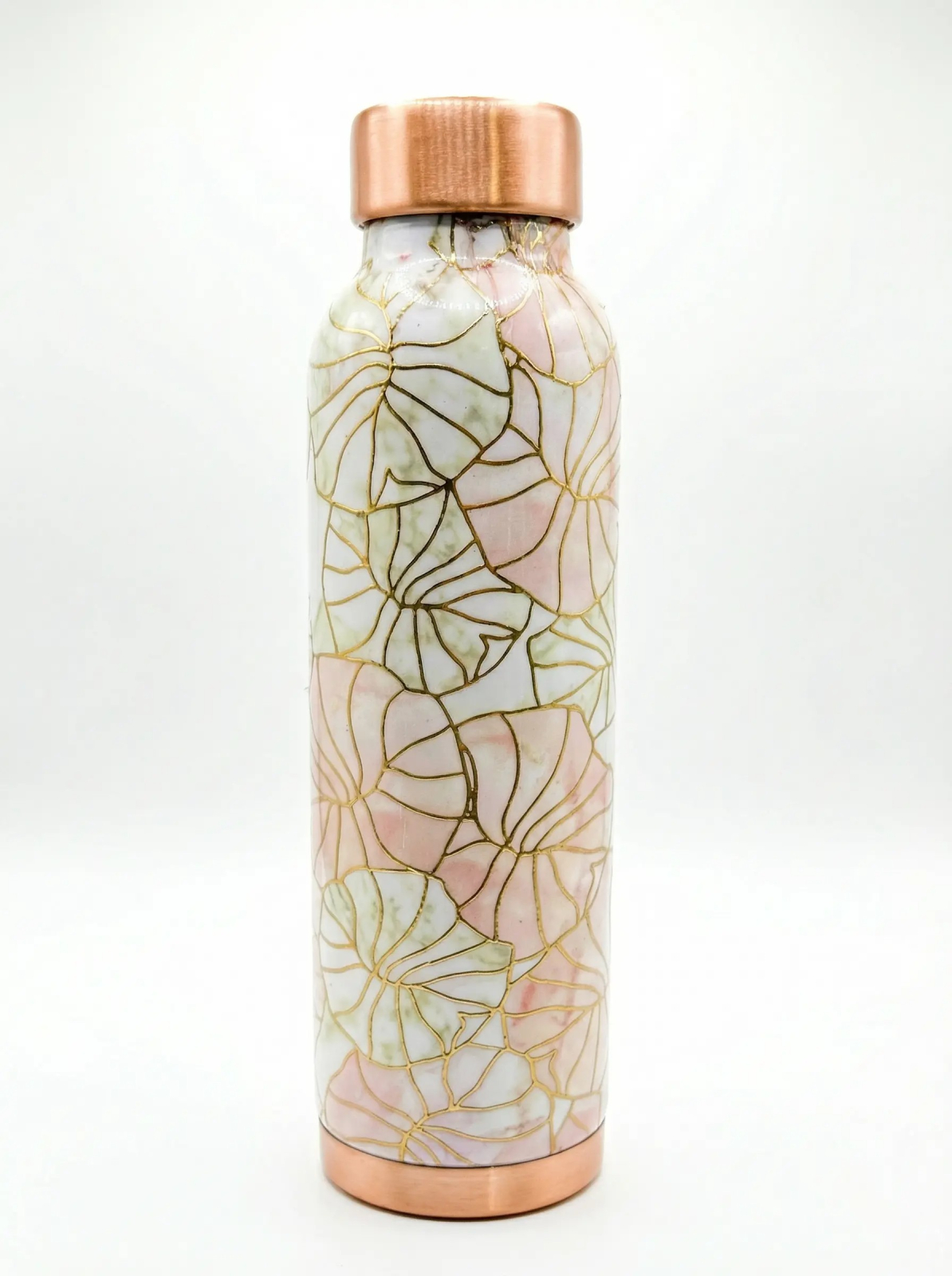 Sticla din cupru Lotus este o piesă elegantă și funcțională, realizată manual din cupru de puritate 99,8%, concepută pentru cei care apreciază tradiția, estetica și materialele naturale autentice.