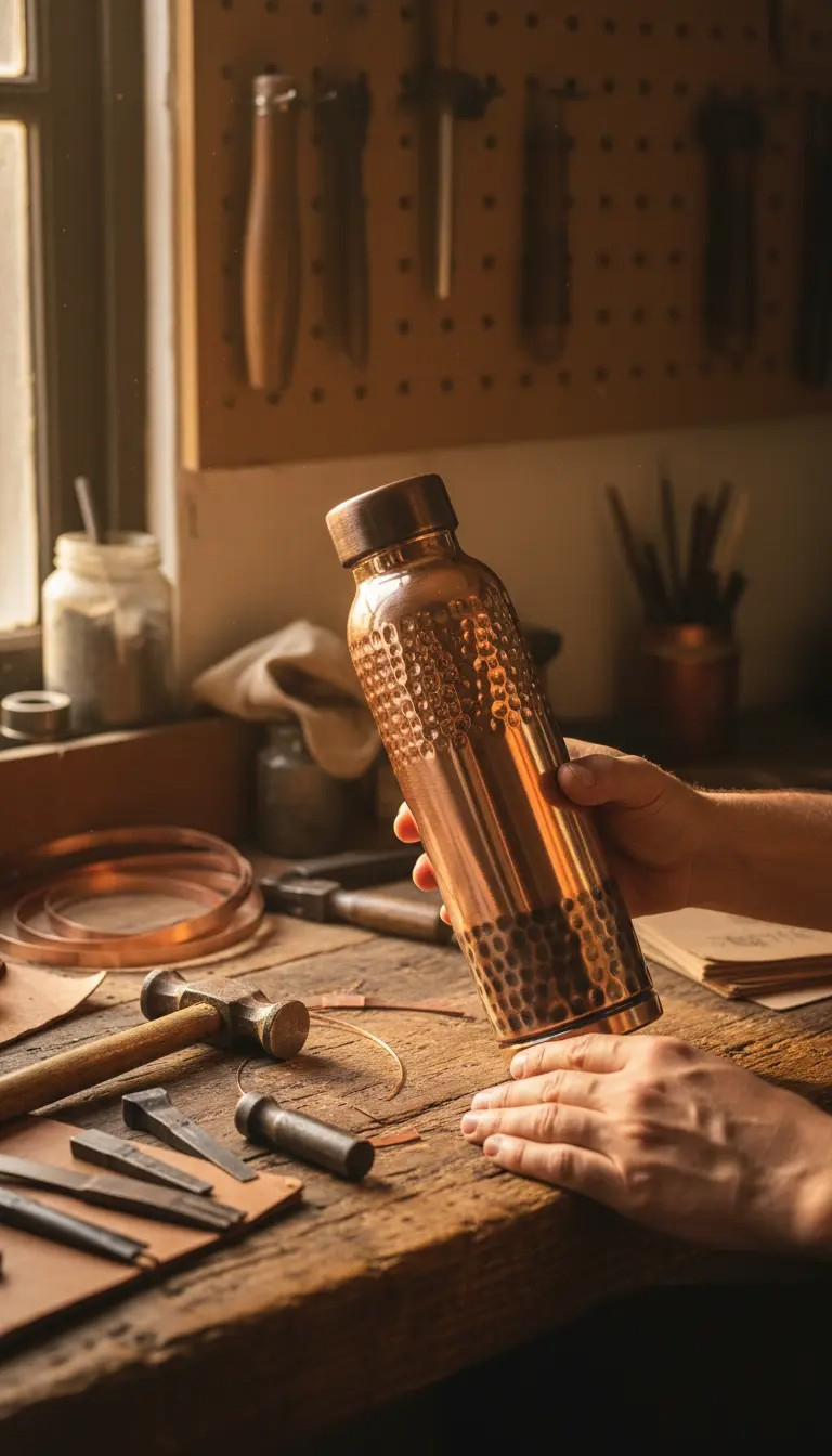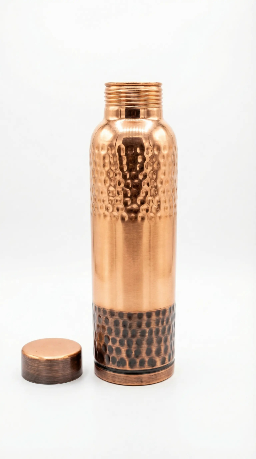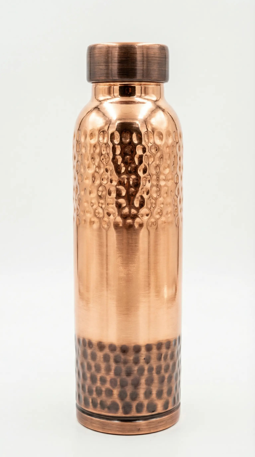 Descoperă echilibrul dintre tradiție, funcționalitate și design artizanal prin Sticla din cupru Trio, o piesă premium realizată manual din cupru pur, concepută pentru depozitarea apei într-un mod natural și elegant. Designul său distinctiv în trei finisaje — ciocănit manual, clasic satin și antichizat — transformă această sticlă într-un obiect cu personalitate, ce îmbină estetica modernă cu meșteșugul tradițional.
